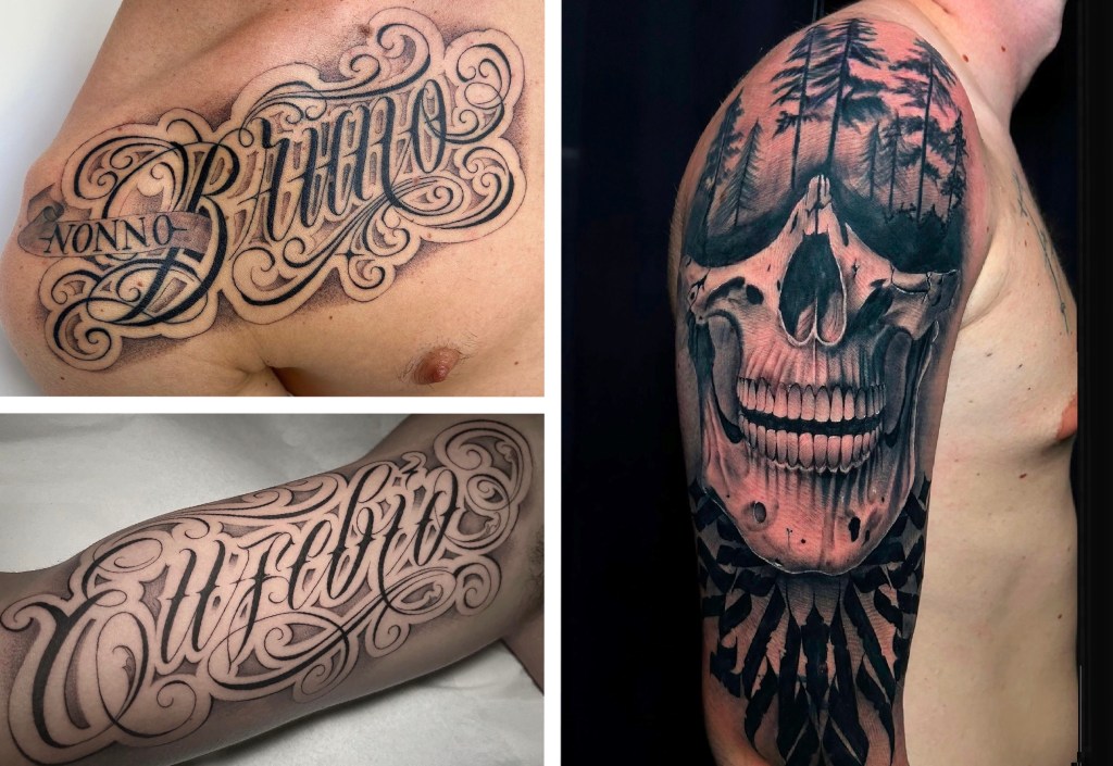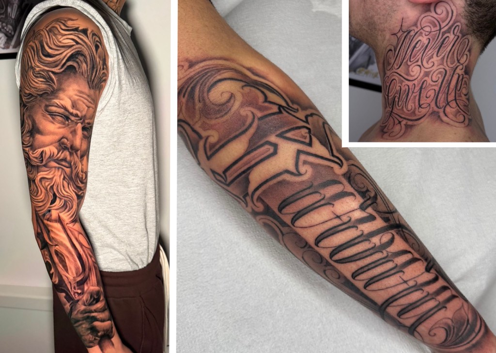 Meet Joele our Lettering and realism specialist artist from Milan, Italy. Who can create lettering with unique and original designs, where letters are not wrote but drawn with a great deal of details and curves. Our artist will sketch and visualize an amazing result, which sets it apart from the rest. In lettering, the artist has the freedom to express his artistic vision, whereas calligraphy requires discipline, precision, and adherence to strict guidelines. Joele is also our realism expert, known for creating highly detailed, lifelike tattoos that capture depth, texture, and emotion. With a sharp eye for precision and a deep understanding of realism techniques, Joele transforms ideas, portraits and references into striking, timeless pieces. Every tattoo is approached with care, artistry and a commitment to excellence. Whether you want a unique lettering, perfect calligraphy or lifelike tattoo do not hesitate to contact Joele at Tattooland Canarias.