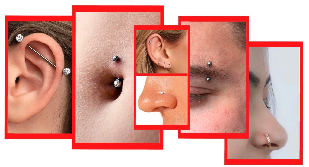 SURFACE: Surface piercings are placed on flat areas of the body, rather than through a traditional fold or protrusion of skin. Surface piercings can be prone to rejection and other issues even under the best circumstances. Especially single-point/microdermal/dermal piercings, which all have a single entry point in the body, have a particularly high rate of rejection.