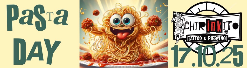 So how do we celebrate Pasta day at Chirinkito? Inklude a pasta related word or image to your tattoo and receive a special discount… if it sounds like fun contact us to find out more and ink your pasta!